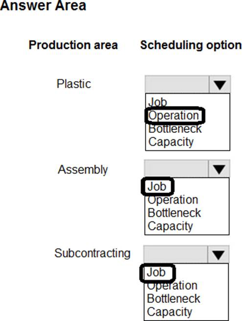 Which scheduling options should you use? To answer, select the appropriate option in the answer area. NOTE: Each correct selection is worth one point.