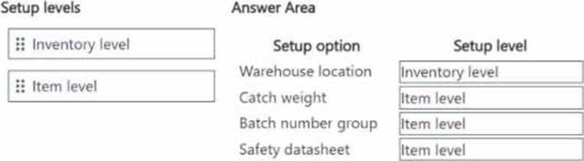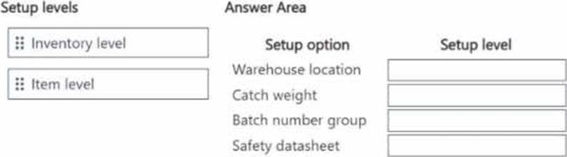 At which level should you set up the items? To answer, drag the appropriate setup levels to the correct setup options. Each setup level may be used once, more than once, or not at all. You may need to drag the split bar between panes or scroll to view content. NOTE: Each correct selection is worth one point.