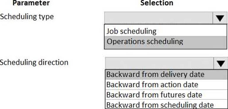 Which scheduling parameters should you use? To answer, select the appropriate option in the answer area. NOTE: Each correct selection is worth one point.