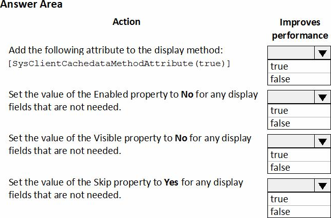 A user reports that a form takes a long time to load. You suspect that the issue relates to a display method.