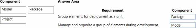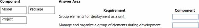 Which components should you use? To answer, drag the appropriate components to the correct requirements. Each component may be used once, more than once, or not at all. You may need to drag the split bar between panes or scroll to view content. NOTE: Each correct selection is worth one point.