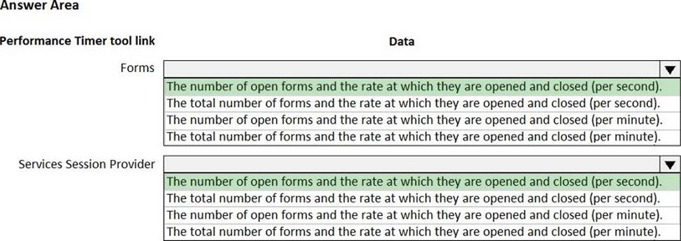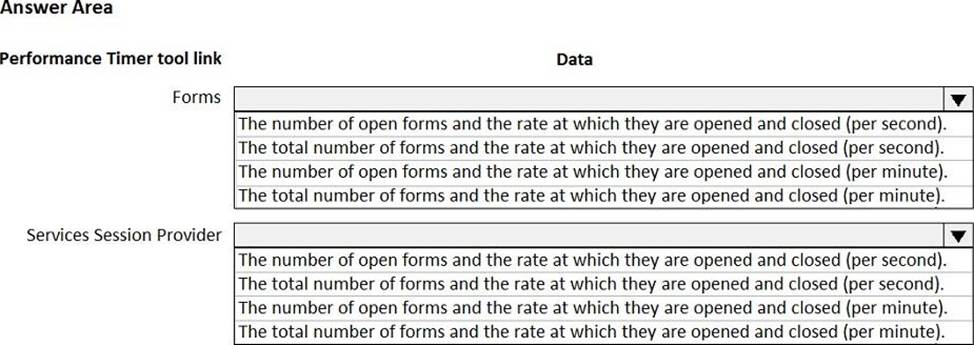 You launch the Performance Timer tool to troubleshoot performance issues with a business process.