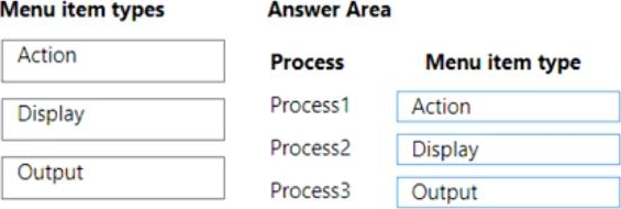 Which menu item types should you use? To answer, drag the appropriate menu item types to the correct processes. Each menu item type may be used once, more than once, or not at all. You may need to drag the split bar between panes or scroll to view content. NOTE: Each correct selection is worth one point.