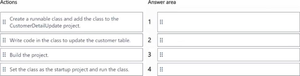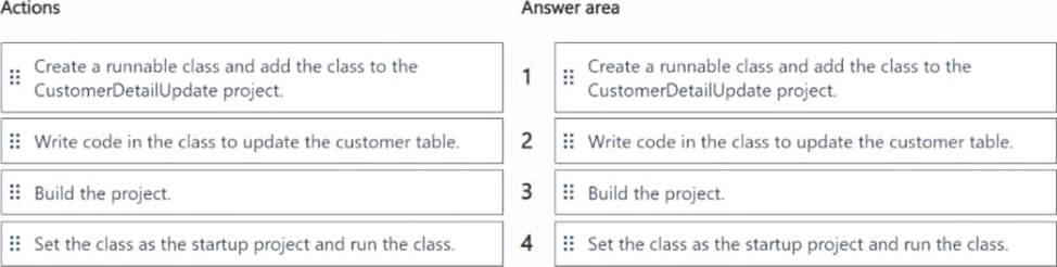 In which order should you perform the actions? To answer, move all actions from the list of actions to the answer area and arrange them in the correct order.