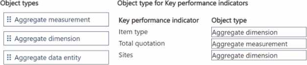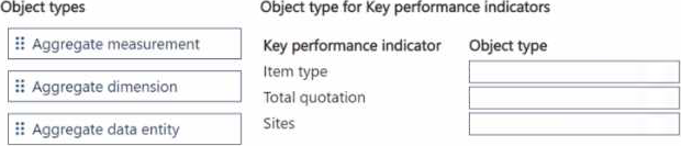 Which object types should you use? To answer, move the appropriate object types to the correct key performance indicators. You may use each object type once, more than once, or not at all. You may need to move the split bar between panes or scroll to view content. NOTE: Each correct select is worth one point.