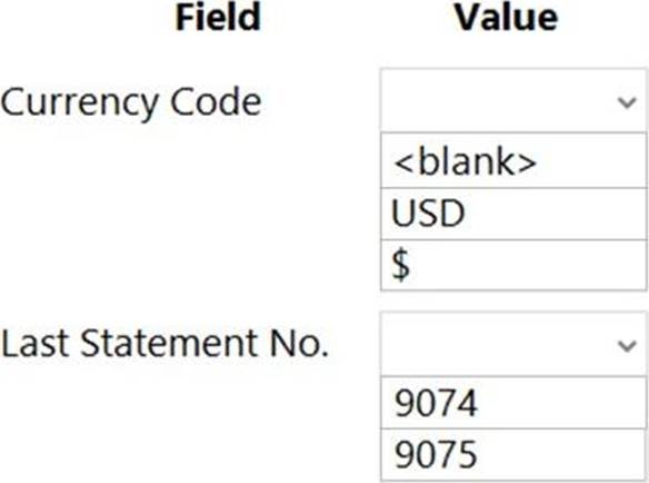 ✑ Use 9075 as the number of the next bank account statement for reconciliation in Business Central.