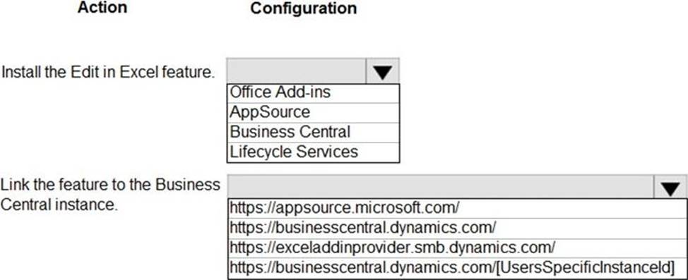 How should you configure the system? To answer, select the appropriate options in the answer area. NOTE: Each correct selection is worth one point.