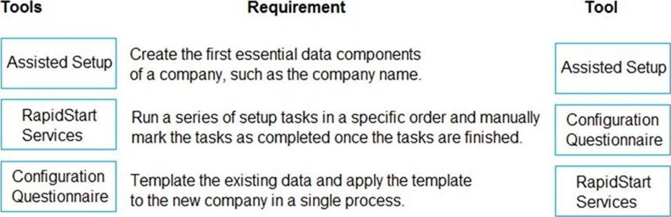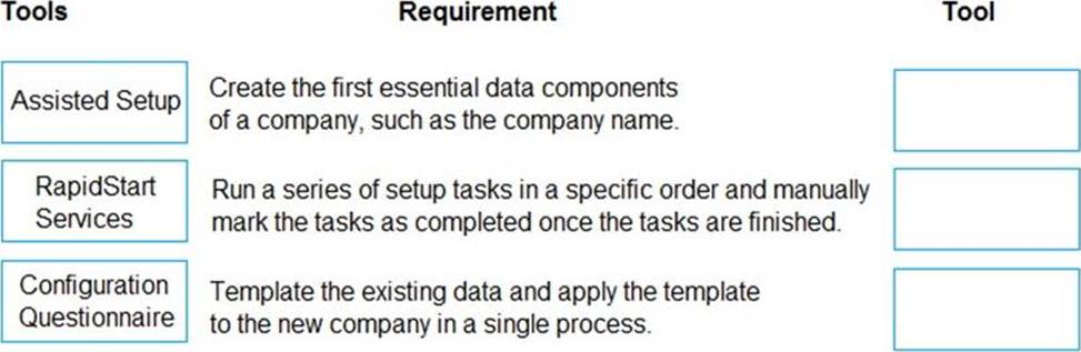Which tools should you use? To answer, drag the appropriate tools to the correct requirements. Each tool may be used once, more than once, or not at all. You may need to drag the split bar between panes or scroll to view content. NOTE: Each correct selection is worth one point.