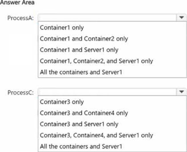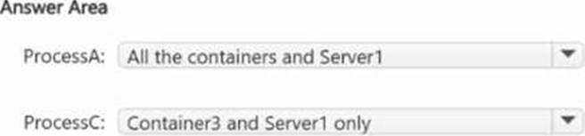 Where can you verify that ProcessA and ProcessC are in a running state? To answer, select the appropriate options in the answer area. NOTE: Each correct selection is worth one point.