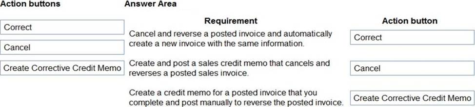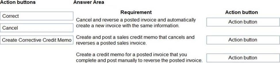 Which actions should you perform? To answer, drag the action buttons to the correct requirements. Each action button may be used once, or not at all. You may need to drag the split bar between panes or scroll to view content. NOTE: Each correct selection is worth one point.