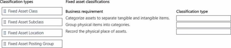 Which classification type should you use? To answer, move the appropriate classification types to the correct business requirements. You may use each classification type once, more than once, or not at all. You may need to move the split bar between panes or scroll to view content. NOTE: Each correct selection is worth one point.
