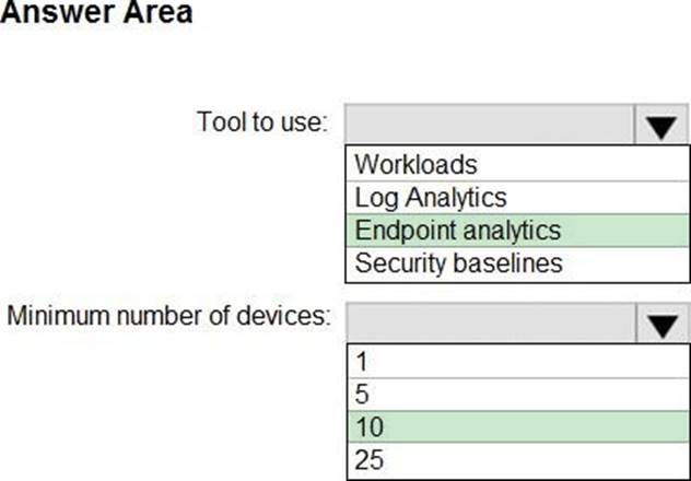 From the Microsoft Intune admin center, you plan to create a baseline to monitor the Startup score and the App reliability score of enrolled Windows 10 devices.