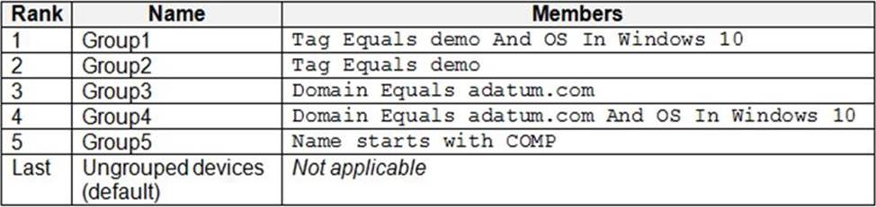 Your company uses Microsoft Defender for Endpoint Microsoft Defender for Endpoint includes the device groups shown in the following table.
