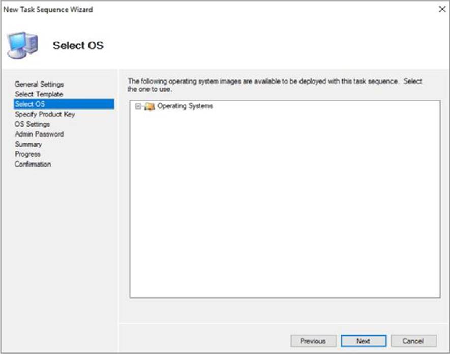 You discover that there are no operating system images listed on the Select OS page as shown in the following exhibit.