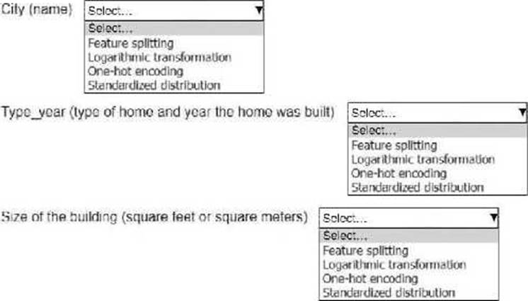 An ML engineer is working on an ML model to predict the prices of similarly sized homes. The model will base predictions on several features.