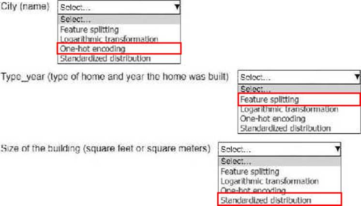 Select the correct feature engineering techniques for the following list of features. Each feature engineering technique should be selected one time or not at all (Select three.)