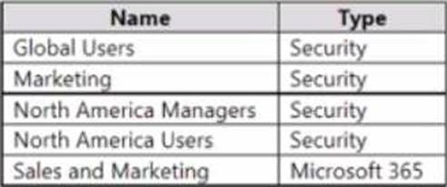 User1 is a member of the groups shown in the following table.
