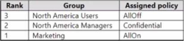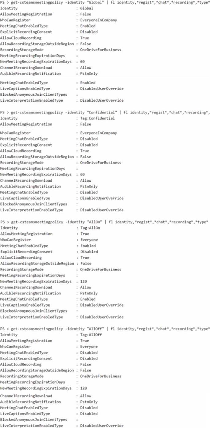 You have group policy assignments for the meeting policies as shown in the following table.