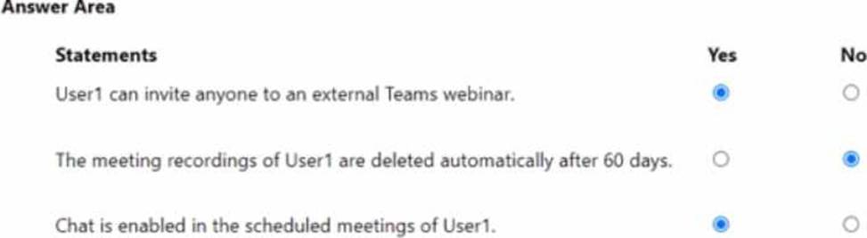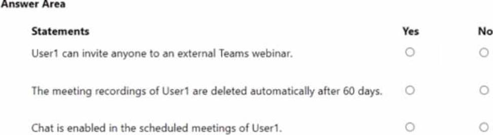 You are evaluating Microsoft Teams meeting features for a user named User1.