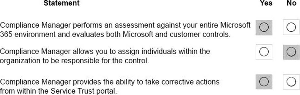instructions: For each of the following statements, select Yes if the statement is true Otherwise, select No. NOTE: Each correct selection is worth one point