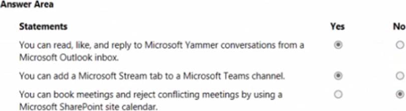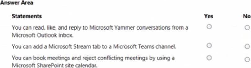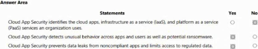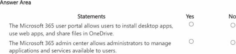For each of the following statements, select Yes if the statement is true. Otherwise, select No. NOTE: Each correct selection is worth pone point.