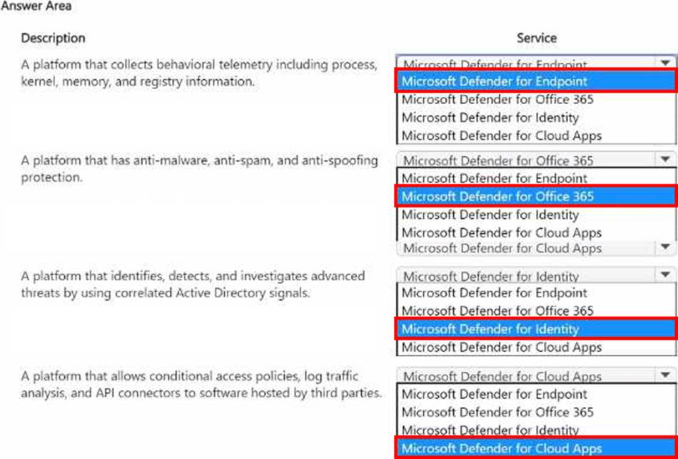 You need to identify the services provided by Microsoft Defender.