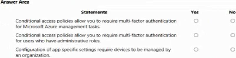 For each of the following statements, select Yes if the statement is true. Otherwise, select No. NOTE: Each correct selection is worth one point.