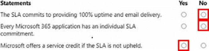 A company is investigating the service-level agreements (SLAS) provided by Microsoft 365.