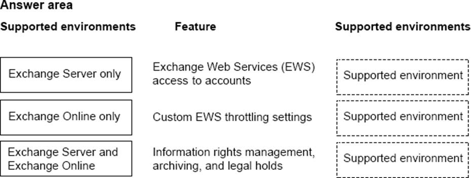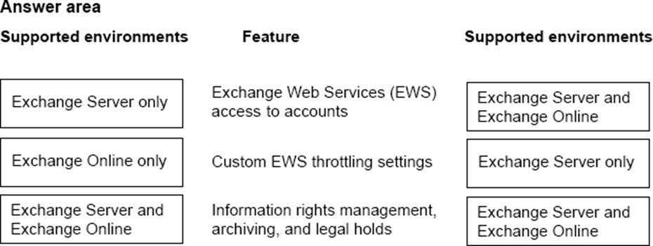You need to identify differences between the features in Exchange Online and Exchange Server.