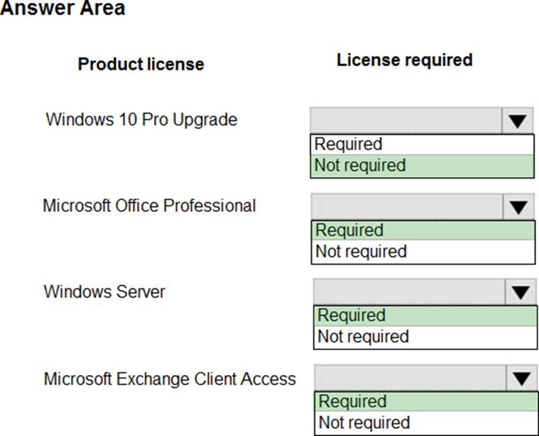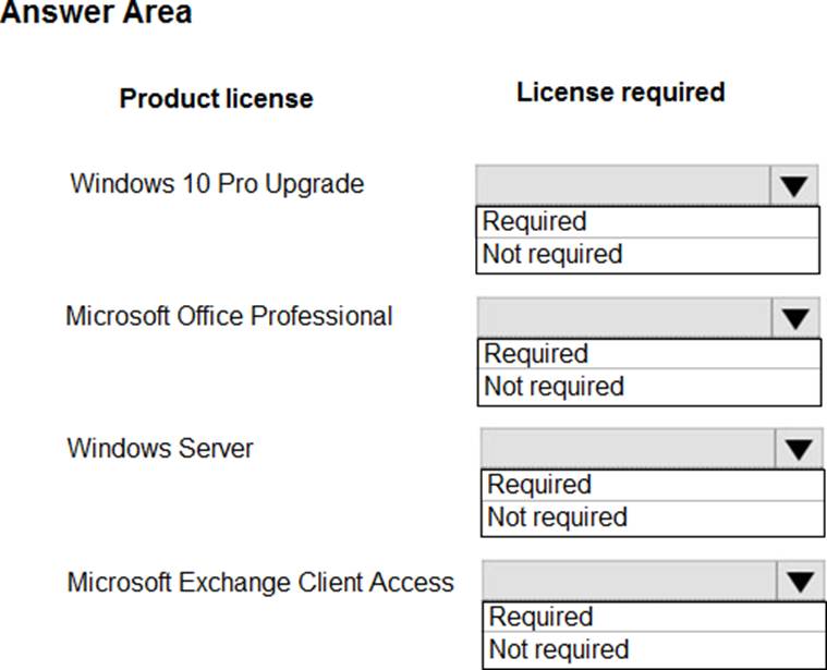 Which product licenses should the company purchase? To answer, select the appropriate options in the answer area. NOTE: Each correct selection is worth one point.