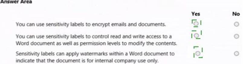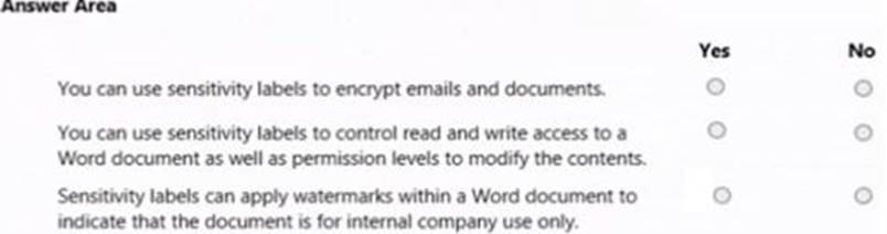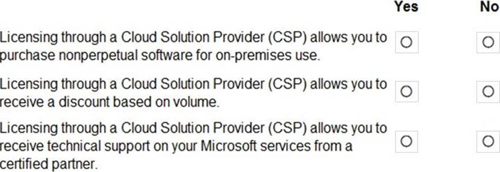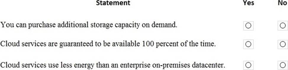 For each of the following statements, select Yes if the statement is true. Otherwise, select No. NOTE: Each correct selection is worth one point.