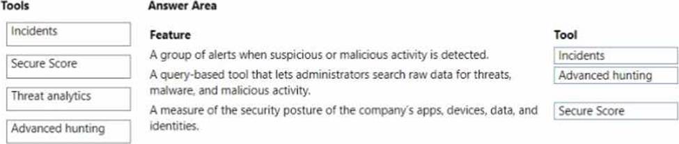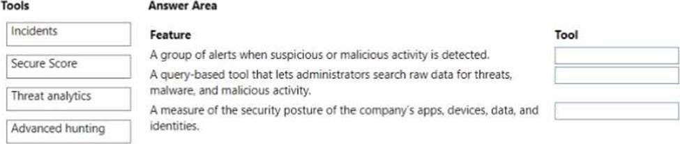 Which tool should you identify? To answer, drag the appropriate tools to the correct features. Each tool may be used once, more than once, or not at all. You may need to drag the split bar between panes or scroll to view content. NOTE: Each correct selection is worth one point.