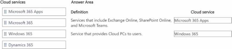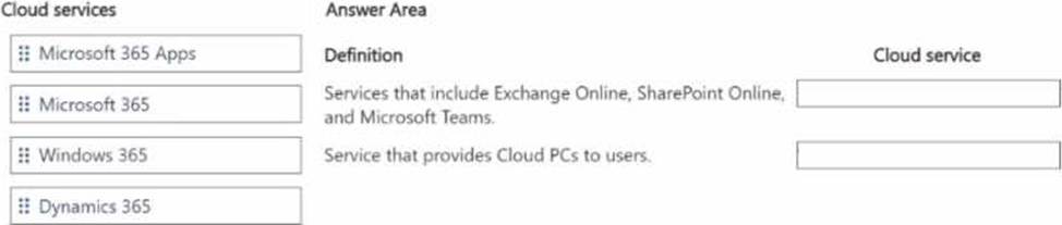Match each cloud service to its definition. Each cloud service may be used once, more than once, or not at all. NOTE: Each correct match is worth one point