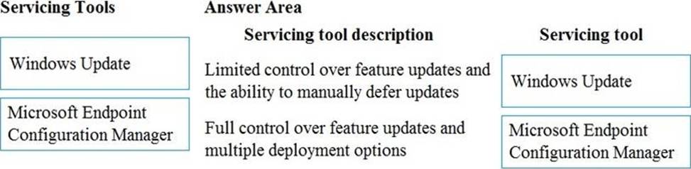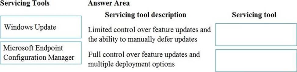 You need to identify which servicing tools the company should use for Windows 10.