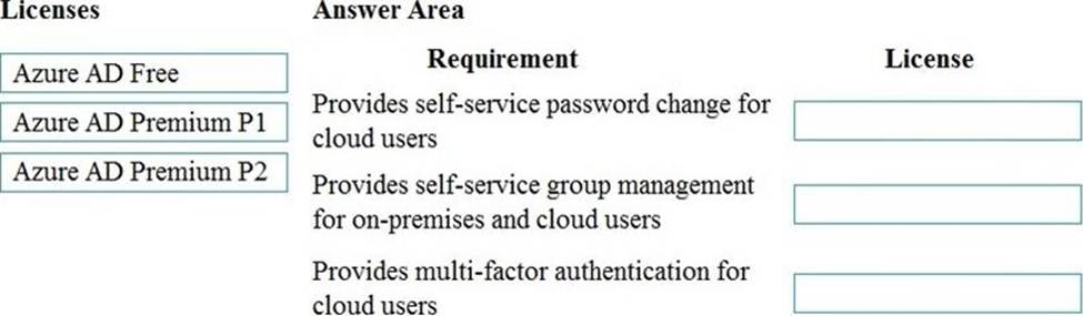 Match each Azure AD license to its requirement. To answer, drag the appropriate Azure AD license from the column on the left to its requirement on the right. Each Azure AD license may be used once, more than once, or not at all. NOTE: Each correct match is worth one point.