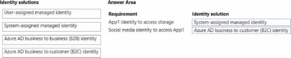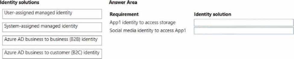 What should you use? To answer, drag the appropriate identity solution to the correct requirement. Each identity solution may be used once, more than once, or not at all. You may need to drag the split bar between panes or scroll to view content. NOTE Each correct selection is worth one point.