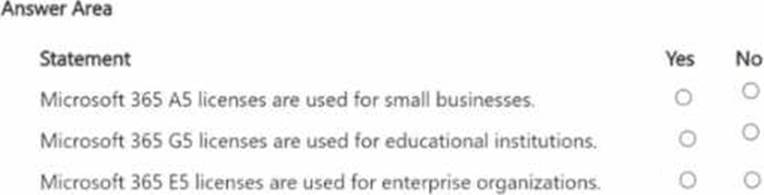 For each of the following statements, select Yes if the statement is true. Otherwise, select No. NOTE: Each correct selection is worth one point.