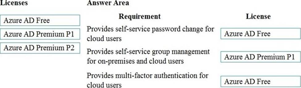 Match each Azure AD license to its requirement. To answer, drag the appropriate Azure AD license from the column on the left to its requirement on the right. Each Azure AD license may be used once, more than once, or not at all. NOTE: Each correct match is worth one point.
