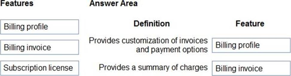 You need to identify billing and purchasing features in Microsoft 365.