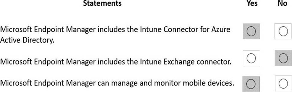 For each of the following statements, select Yes if the statement is true. Otherwise, select No. NOTE: Each correct selection is worth one point.