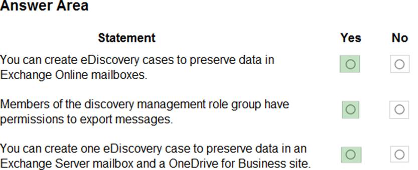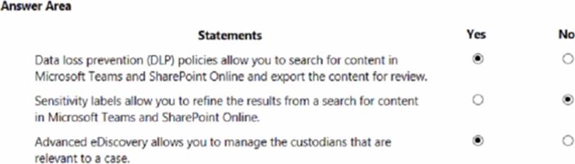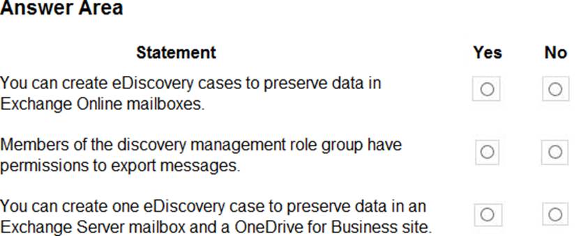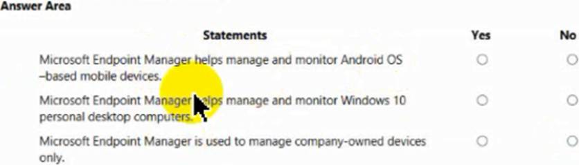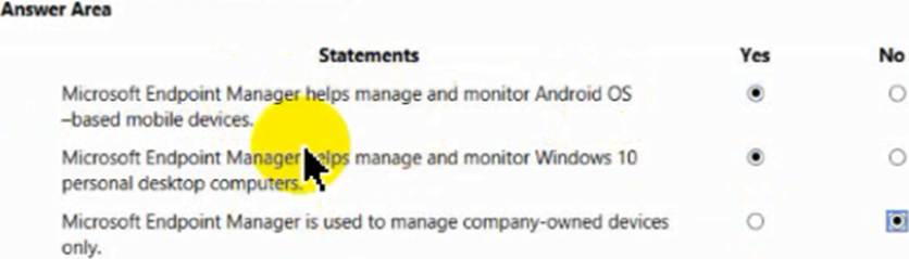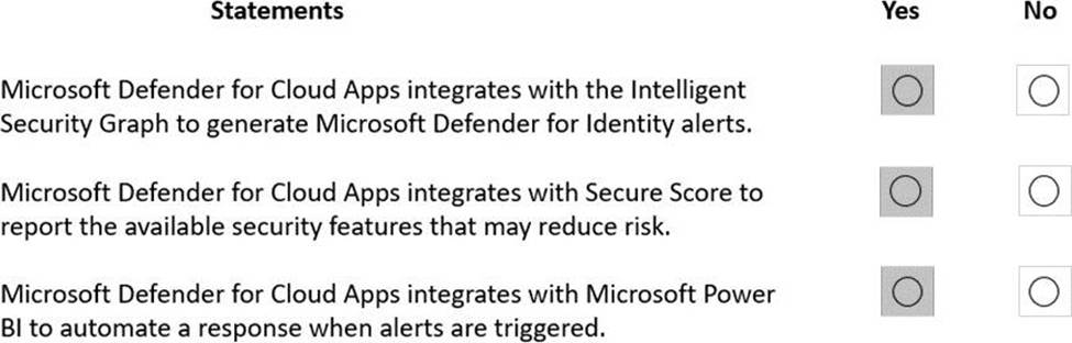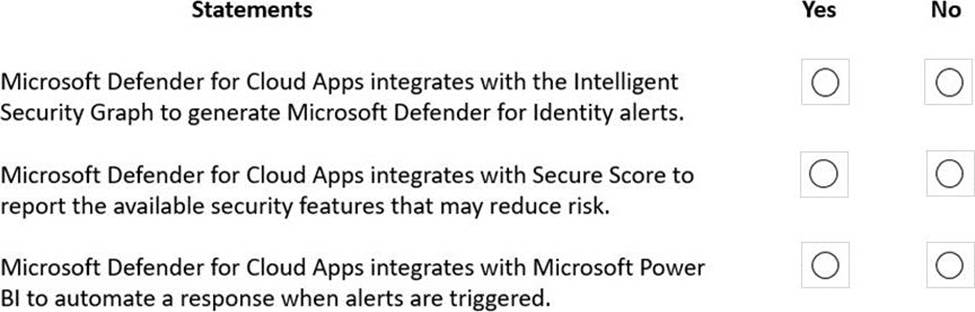 For each of the following statements, select Yes if the statement is true. Otherwise, select No. NOTE: Each correct selection is worth one point.