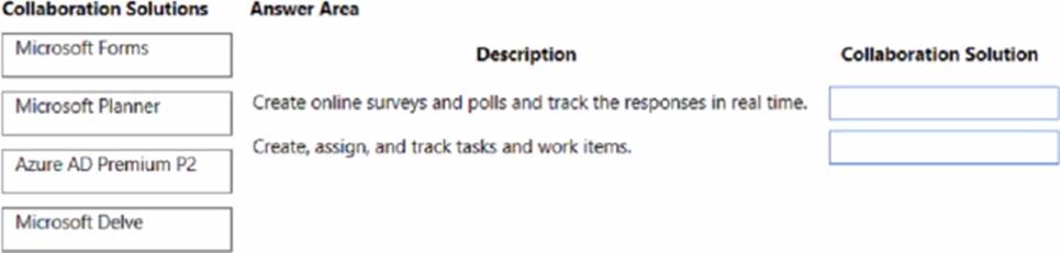 Match each collaboration solution to its description. To answer, drag the appropriate collaboration solution from the column on the left to its description on the right. Each collaboration solution may be used once, more than once, or not at all. NOTE: Each correct match is worth one point.