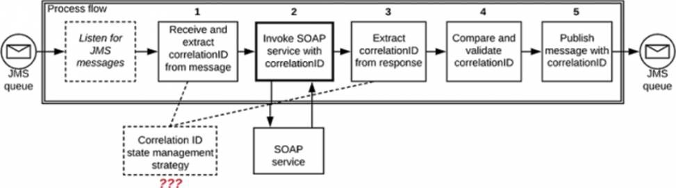 Step 4: The JMS Correlation ID received from the SOAP web service is validated to be identical to the JMS Correlation ID received in Step 1.