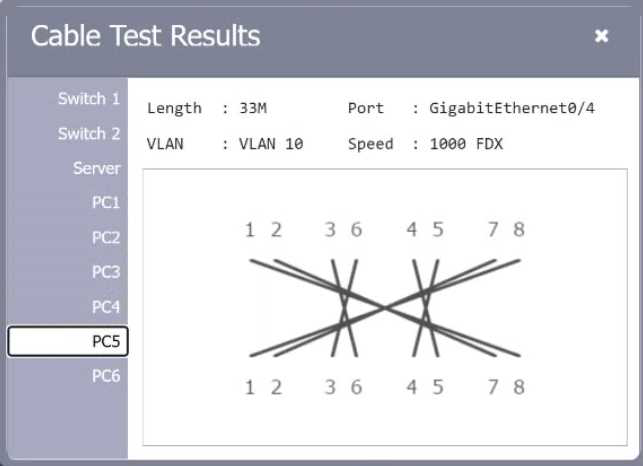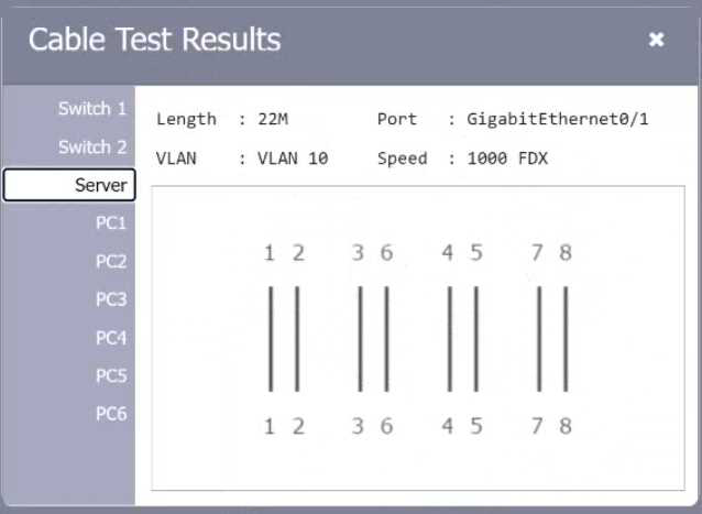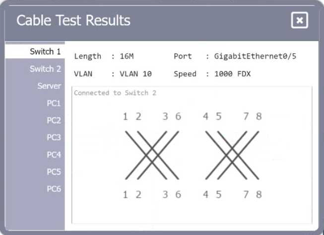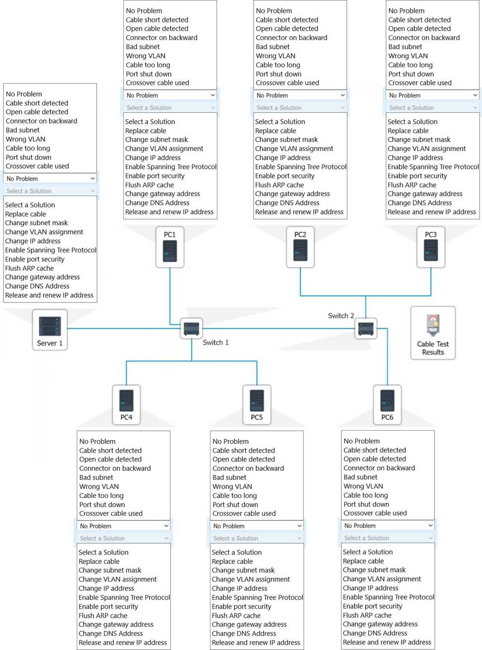 Review the cable test results first, then diagnose by clicking on the appropriate PC, server, and Layer 2 switch.