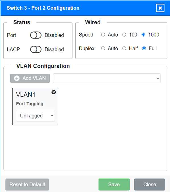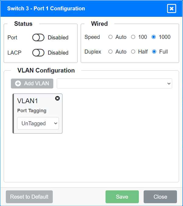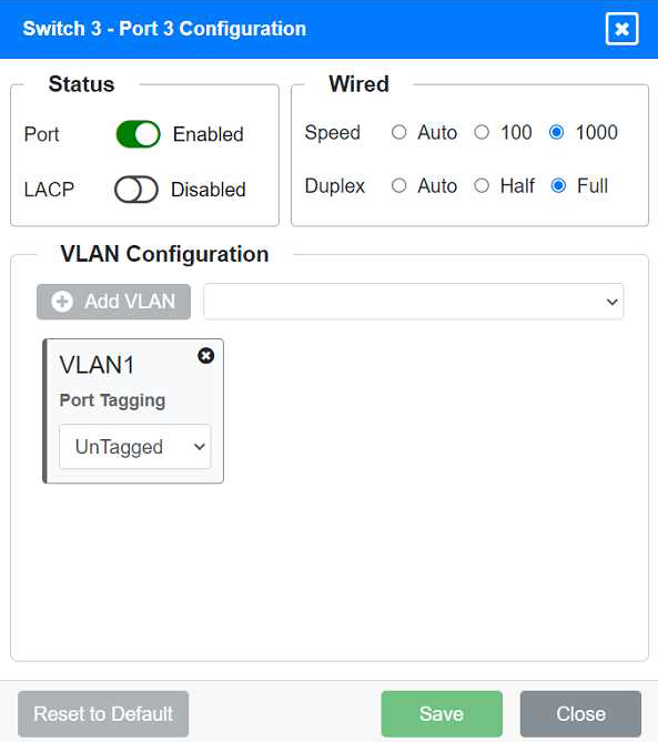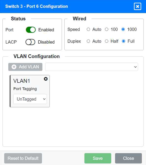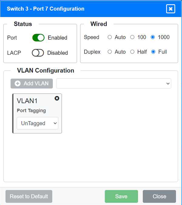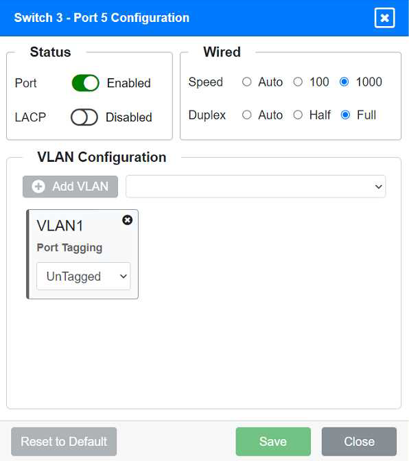 VLAN Configuration: Untagged for VLAN1 (Default)