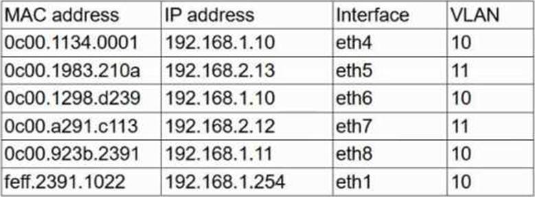 The network switch shows the following ARP table: