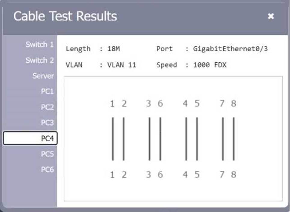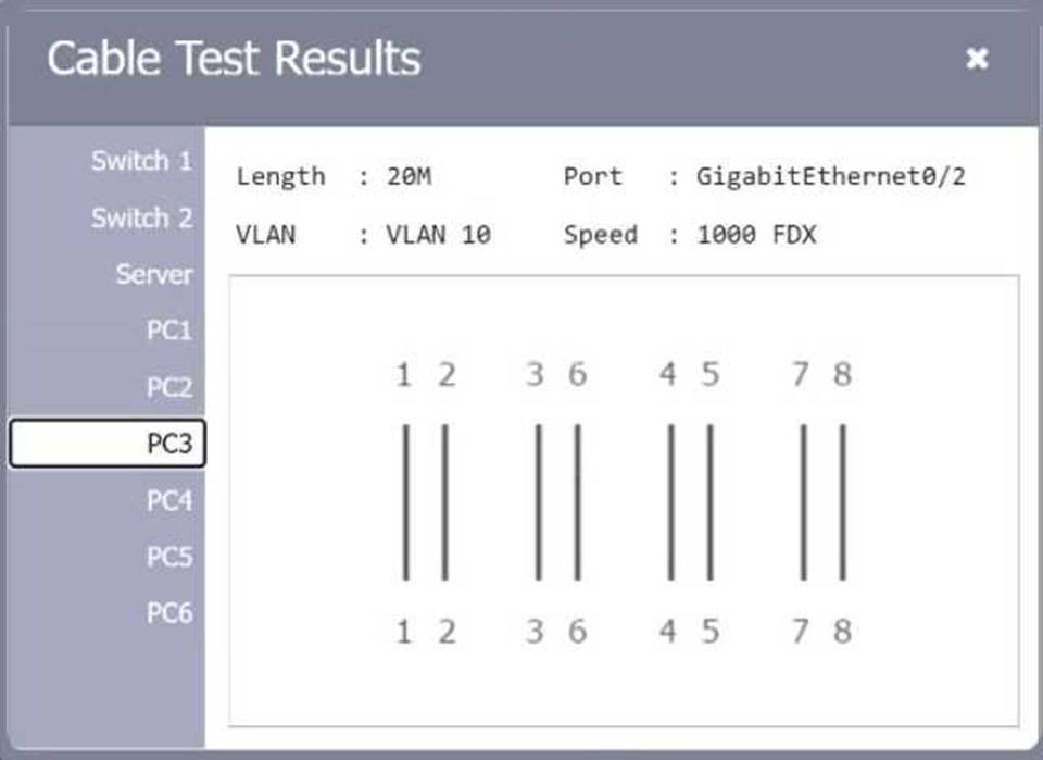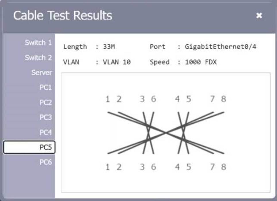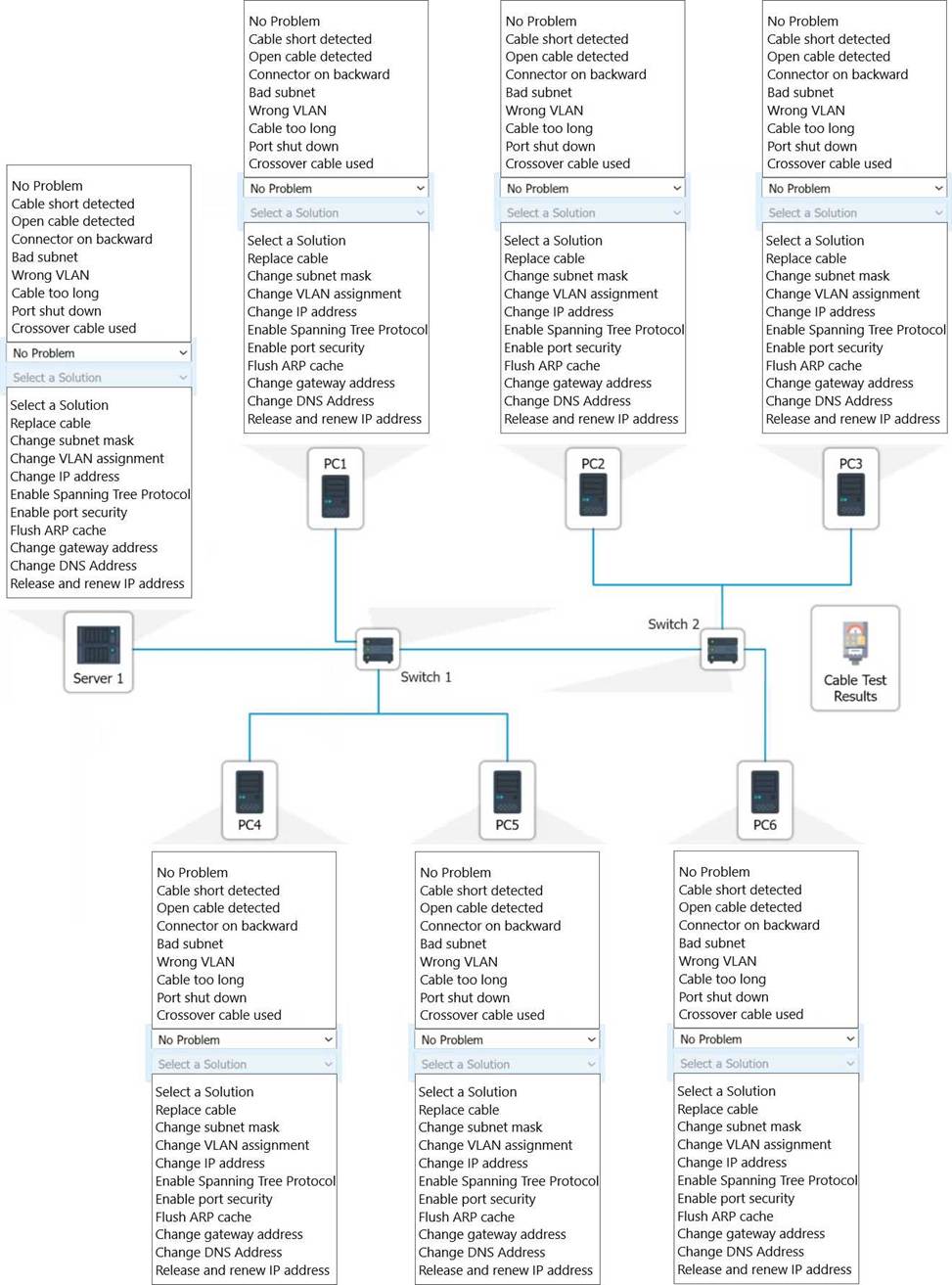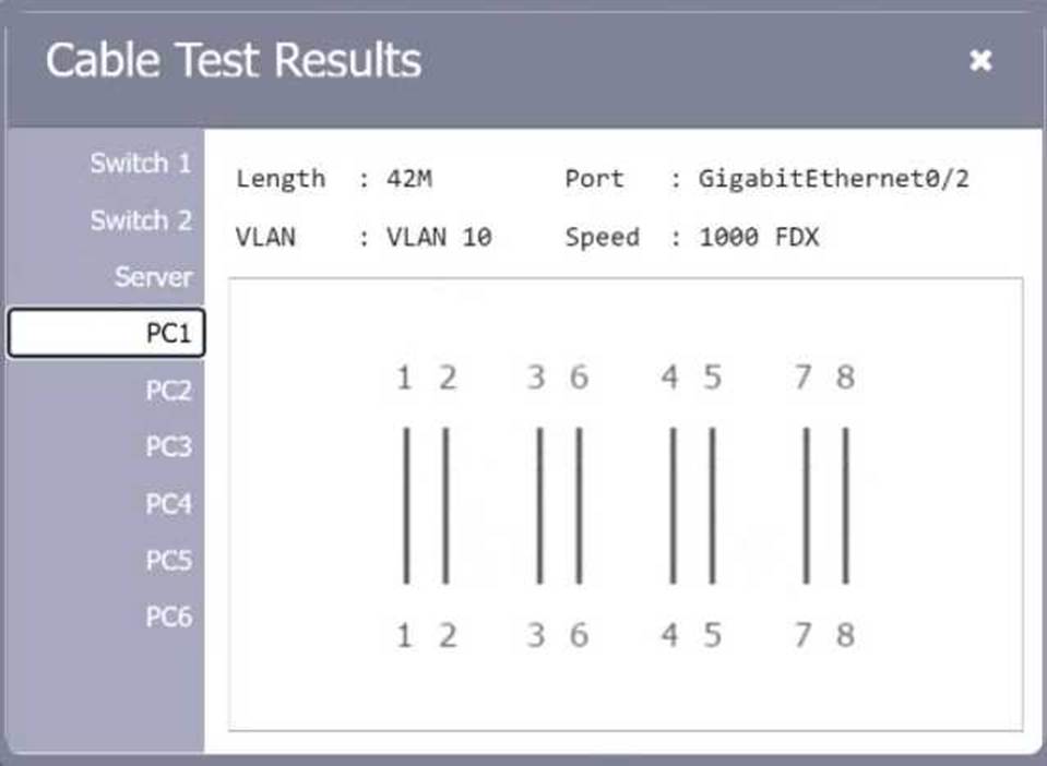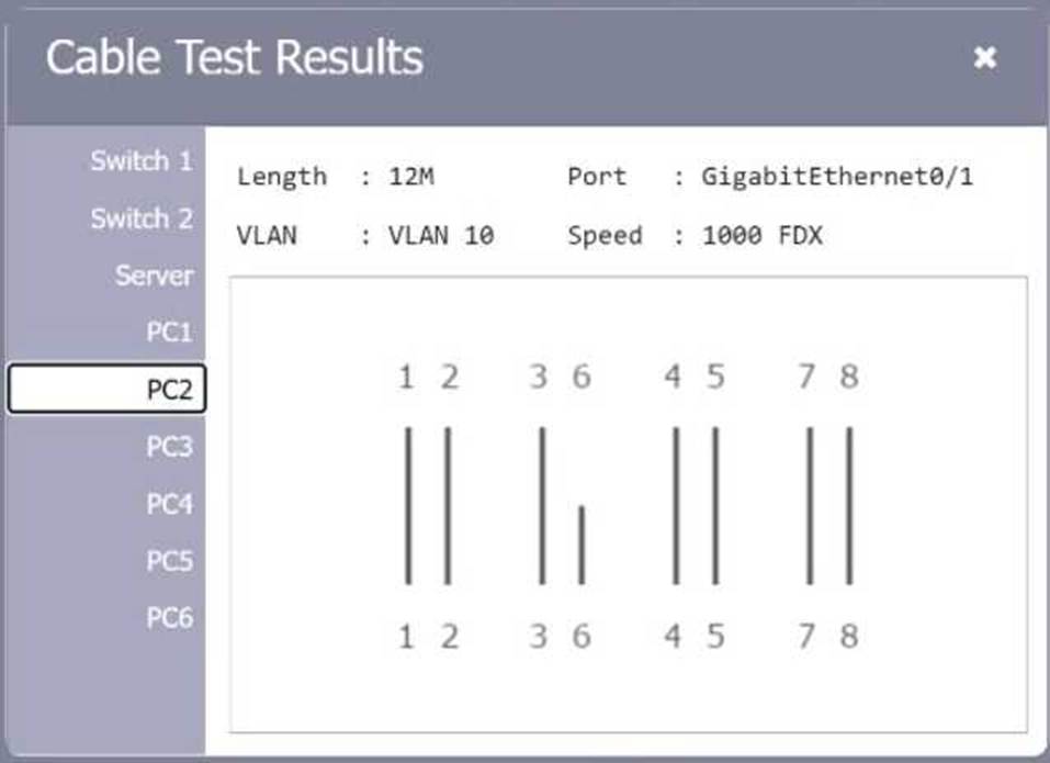 Review the cable test results first, then diagnose by clicking on the appropriate PC, server, and Layer 2 switch.