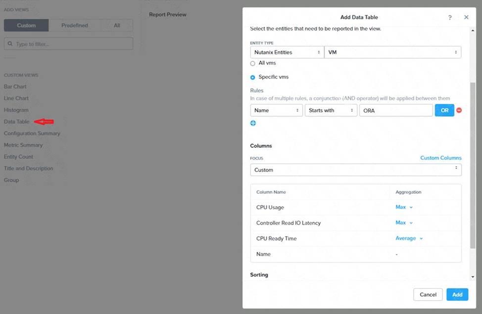 Under the Custom Columns option, add the following variables: Name, I/O Read Latency (ms), VM Ready Time (%). Click Next.