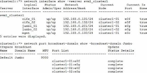 Referring to the exhibit, which ONTAP command will help isolate a possible MTU mismatch?