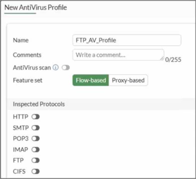 A new antivirus profile named FTP_AV_Profile Feature set: Flow-based